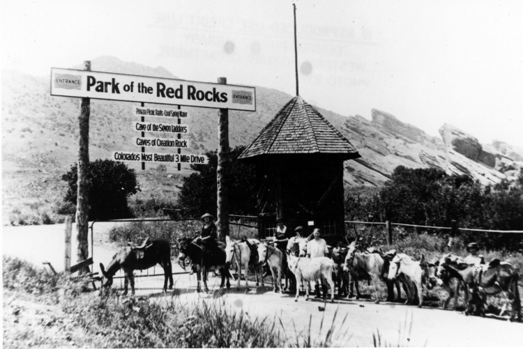Jefferson County Judge Martin Van Buren Luther and a throng of locals celebrated July 4th on the Rocks and supposedly baptize Red Rocks: “We the assembled citizens of Bear Creek and vicinity hereby christen this The Garden of the Angels.”