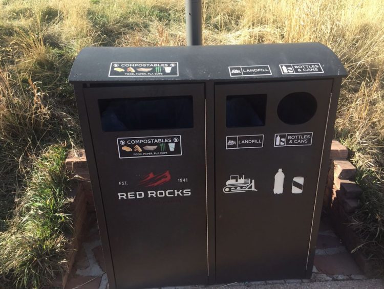 Red Rocks implements a recycling and composting program. By 2008, Red Rocks had reduced its landfill waste by 85% annually.